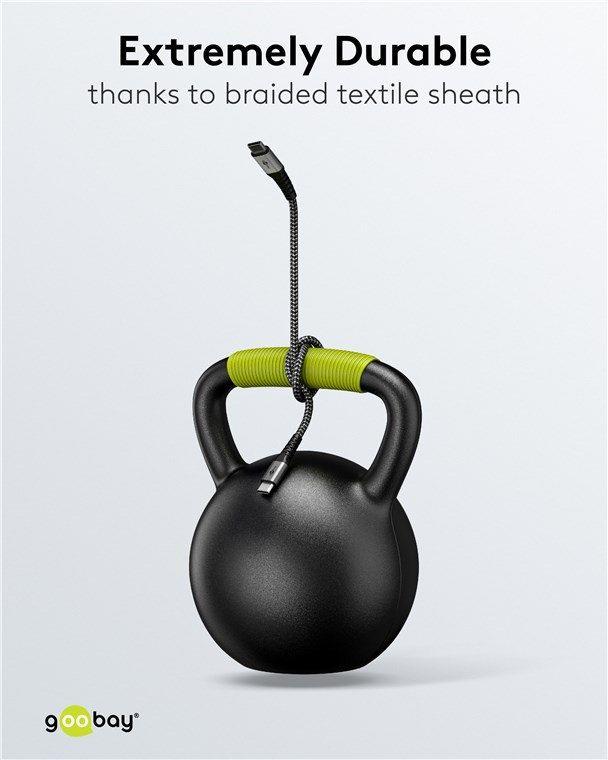 - Durch die verstärkten Metallstecker und den Textilmantel ist das USB-C™-auf-USB-C™-Kabel extrem strapazierfähig und langlebig.
