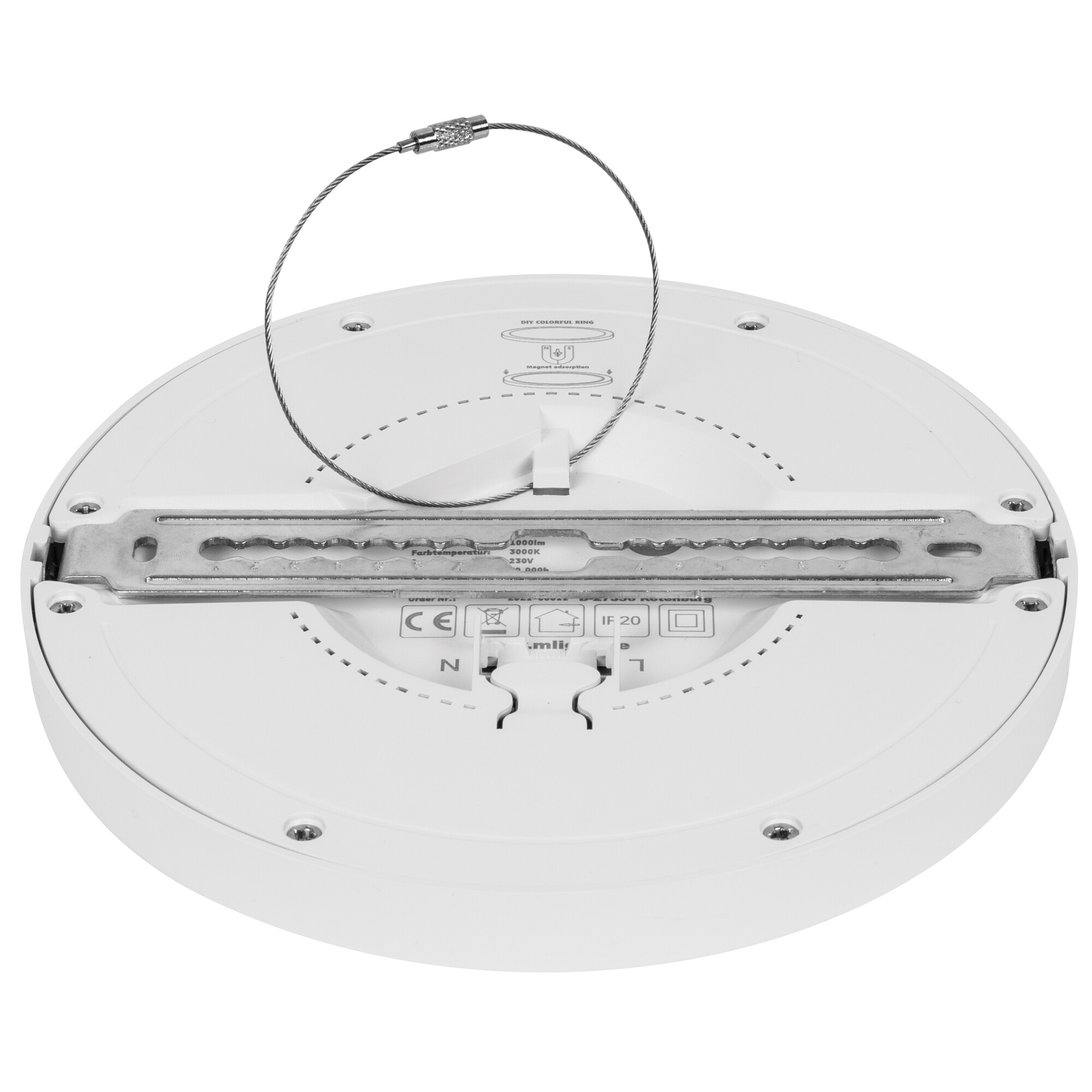 Wenn ein Deckenauschnitt bereits vorhanden ist z.B. durch einen defekt einer alten Lampe kann mittels dem variablem Bügel einfach dieses runde LED Panel aufgesetzt und befestigt werden . Geeignet für Deckenausschnitte von 55 bis 125mm