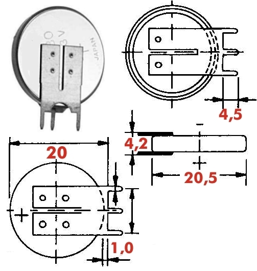 Produktinformationen "CR2032 Lithium Zelle 3V Lötversion stehend"