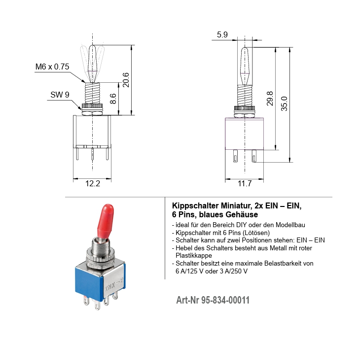 - Gesamtlängfe: Lötpins bis Schalter Ende ca. 35mm