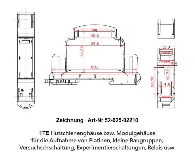 - Innen am Boden Platz für Leiterplatte 88,1 x 14,8mm