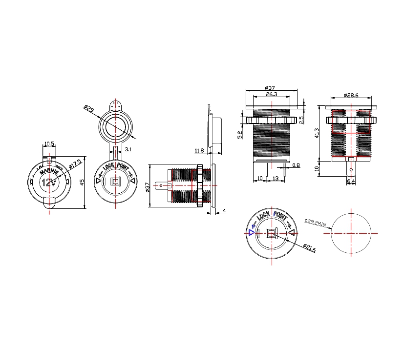 Produktinformationen "KFZ Dose Zigarettenanzünder IP65 Marine KFZ Einbaubuchse mit Abdeckung 20A KFZ Buchse"