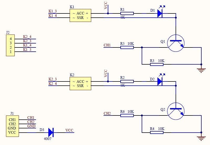 2-Kanal Relaisplatine mit SolideState Relais ( 220-250VAC 2A Halbleiterrelais )