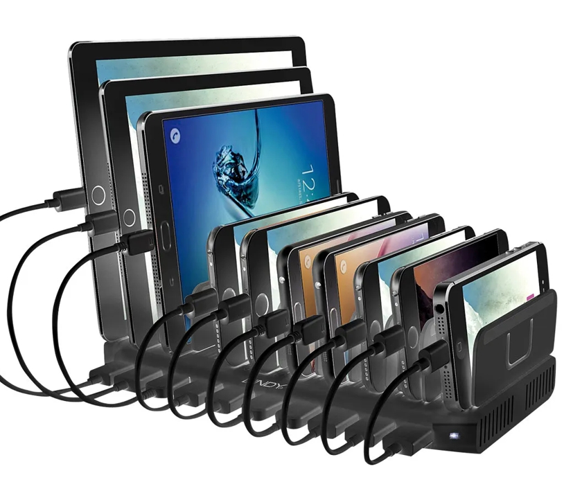 10fach USB Ladestation für Tablet Handys Sammelstelle Ladestation mit Halterung