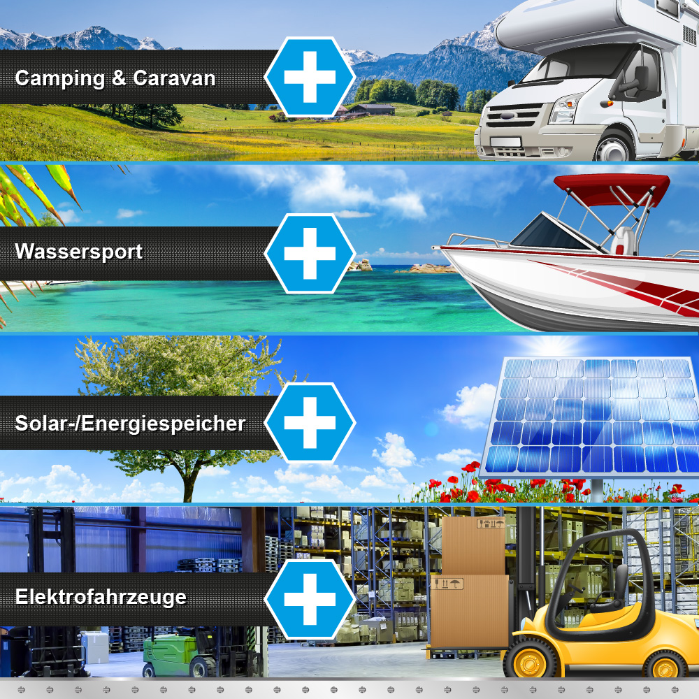 Sie wurden speziell entwickelt, um den hohen neuen Anforderungen an Akkus gerecht zu werden. Die im Vergleich zu AGM Blei-Akkus bis zu 2/3 leichteren LiFePO4-Akkus sind bei schnelleren Ladezyklen trotzdem deutlich leistungsfähiger.