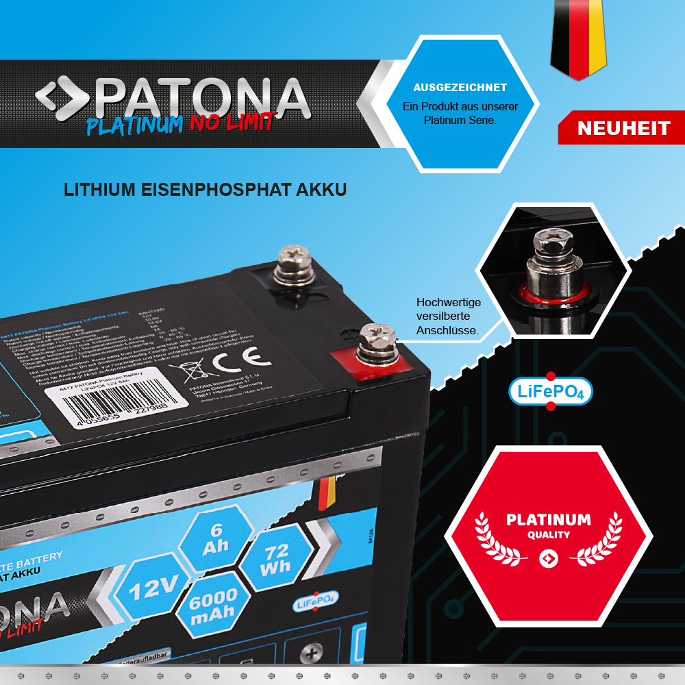 Die PATONA Platinum LiFePO4 - Lithium-Eisenphosphat-Akkus sind eine ausgereifte Alternative zu herkömmlichen Blei-Akkus und verfügen über alle Vorteile der Lithium-Eisenphosphat-Technologie.