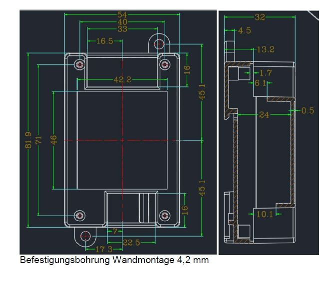+ Gehäuse ist auch für die Wandmontage geeignet da 2x Befestigungsohren bereits integriert