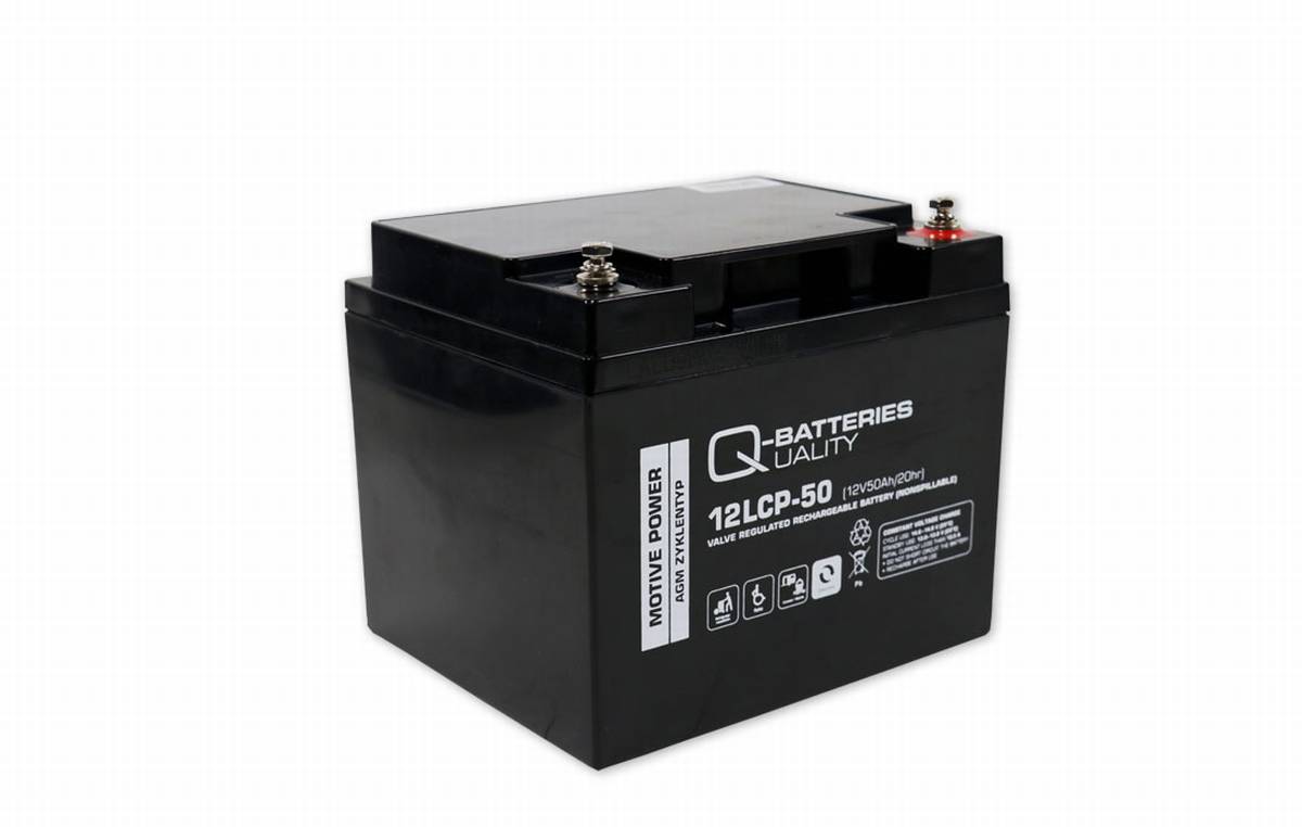 Die Batterien der Q-Batteries LCP-Serie mit der ventilregulierten AGM-Technologie (Absorbent Glass Mat) sind speziell auf den Einsatz von zyklischen Anwendungen zugeschnitten. Im Vergleich zu Gel-Batterien ist der Innenwiderstand bei den AGM-Akkus deutlich niedriger, wodurch sie bei Bedarf größere Strommengen an die Verbraucher liefern können. Durch den Einsatz spezieller Bleiplatten und eines besonderen Elektrolyts, weisen die Akkus eine hervorragende Lebensdauer und Zyklenfestigkeit auf.