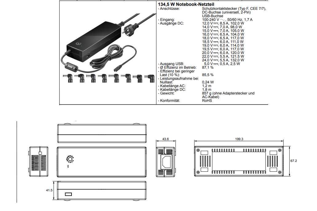 - Belastbarkeit bis max. 134,5Watt ( Automatisch anpassend )