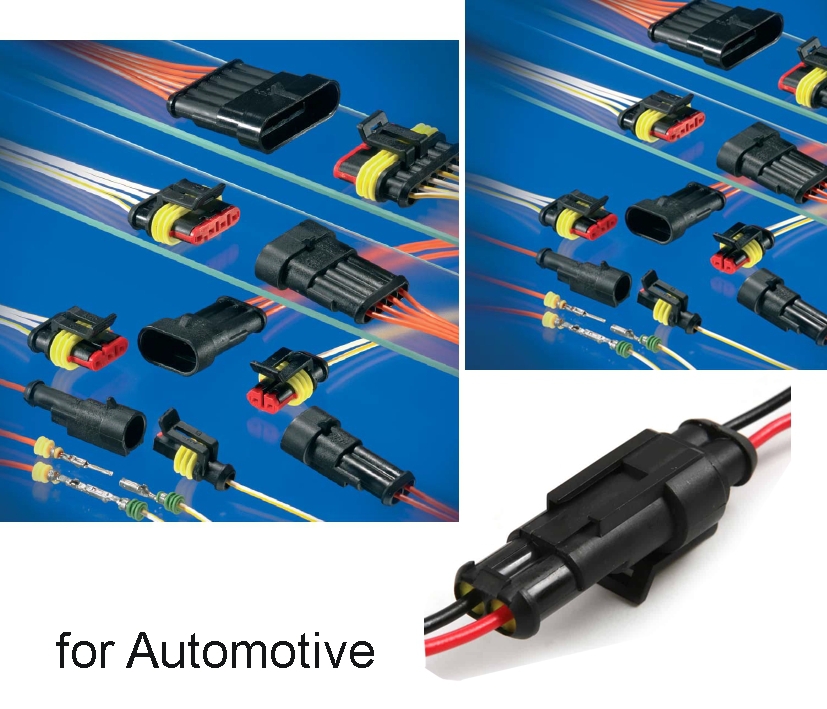 Inhalt: SUPERSEAL Stecker- und Buchsengehäuse inklusive Flachsteckhülsen, Flachsteckern und Gummiabdichtungen.