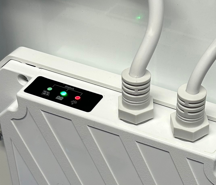 + 3-fach Status-LED Anzeige am Akkupack integriert ( Solar On + Akku OK + Ausgang OK )