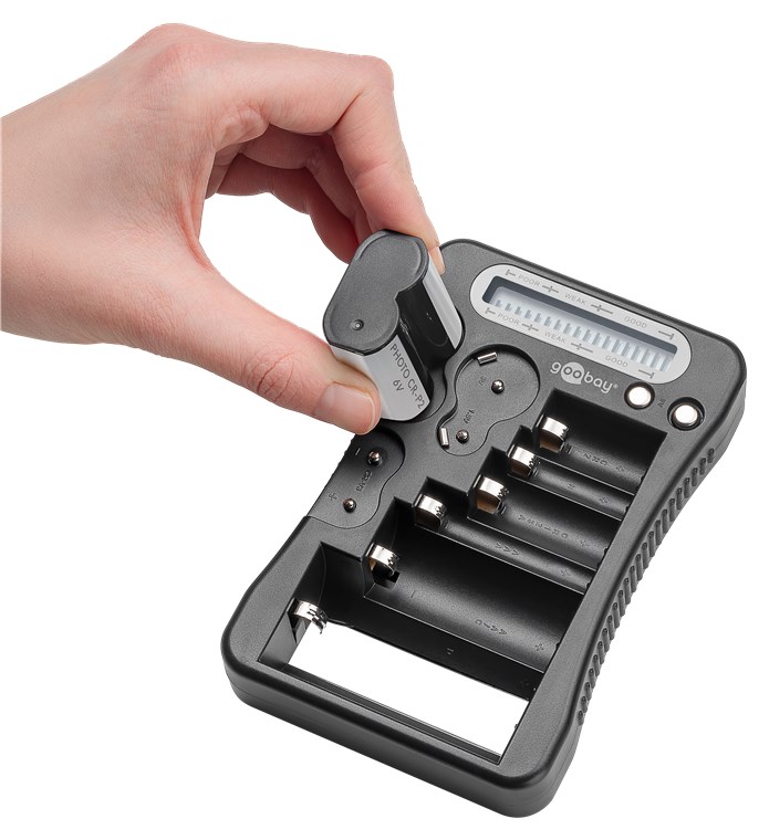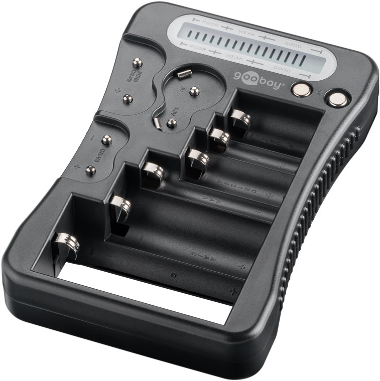 LCD-Batterietester für Standardbaterien und Fotobatterien sowie alle gängigen Knopfzellen und auch Akkus