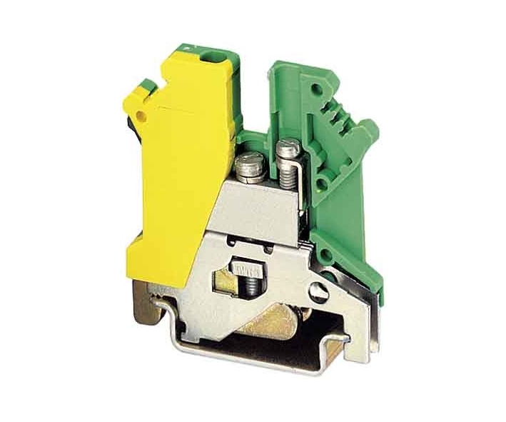 UK4PE = USLKG4 PE-Klemme für 35mm Hutschienen Phönix Durchgangsklemme für Hutschienenmontage Durchgangsklemme bzw. Reihenklemme Serie USLKG 4 Baubreite je Klemme (Rastermass) = 6,2mm Bauhöhe: 43/47mm Montageart aufsteckbar auf Hutschiene mit 35mm Universalfuß der auf Tragschienen NS35...TS35 und NS 32... einsetzbar Abschlussplatte bedingt erforderlich je nach Einsatzart Isolierstoff Thermoplast Farbe Gelb-Grün (PE) mit Zusatzklemmen oben ! Anschließbarer Leiterquerschnitt Feindrähtig ohne Aderendhülse 0,2 ... 4qmm Feindrähtig mit Aderendhülse 0,2 ... 4qmm Eindrähtige Kupferleiter 0,2 ... 4qmm Nennstrom --------- IN bis 32A Bemessungsstrom bis In 41A Bemessungsspannung bis 800V 2 Schraubanschlüsse ( Links + Rechts ) Anzahl der Klemmstellen je Etage 1 Anschlussposition seitlich Anzahl der Etagen 1 Temperatureinsatzbereich: -60...+130°C Lieferumfang: je 1 Stück passendes Zubehör siehe im Zubehör Register oder unter Suche Nr eingeben 42-691-00010 = 35mm Hutschiene 39-798-00210 = Klemmenmarkierung Beschriftung 39-798-00200 = Querverbinder Drahtbrücke 39-798-00160 = Reihenklemme N = Blau ( - ) 39-798-00120 = Reihenklemme X = Grau ( Universalklemme ) 39-798-00170 = Reihenklemme L = Schwarz mit Sicherungshalter 39-798-00220 = Reihenklemme L = Schwarz 39-798-00240 = Reihenklemme + = Rot 39-798-00150 = Reihenklemme PE = Grün-Gelb 32A bis 4qmm 39-798-00140 = Reihenklemme PE = Grün-Gelb 32A bis 6qmm 39-798-00180 = Abschlussplatte D-UK4/10 für UK5 Klemme 39-798-00250 = Endklammer für sicheren Halt auf der Hutschiene 52-625-01810 = AK05 kleiner Installationsverteiler 52-625-01820 = AK03 kleiner Installationsverteiler