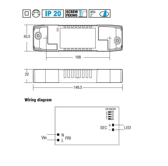 + Abmessungen : 146 x 22 x 43 mm