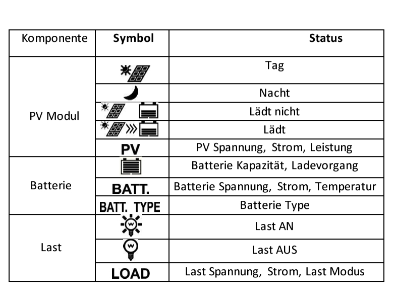 - Solareingang Spannungsbereich 5-100VDC automatisch