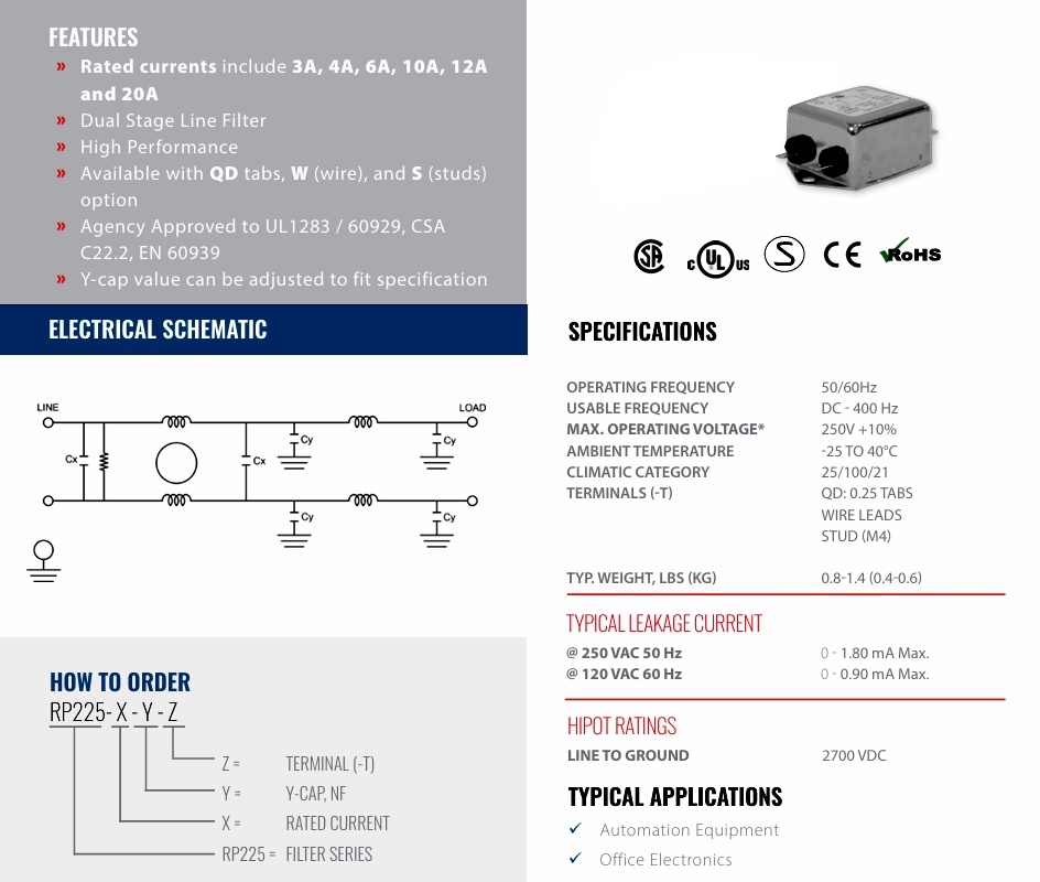 - Universal line filter for standard applications