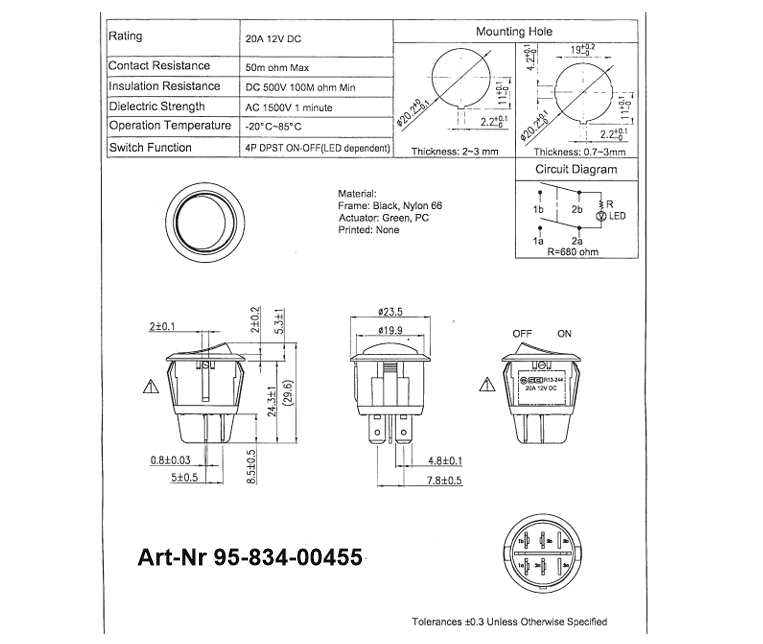 Bst Nr : 95-834-00455 = Grüne Wippe 12-24V DC LED Beleuchtung